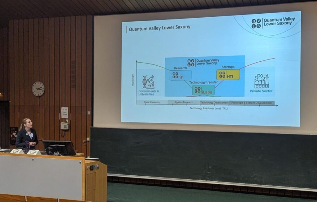 The highlight for QVLS came on Thursday, when Lena Bittermann gave a talk titled “Quantum Valley Lower Saxony – An ecosystem for quantum technologies.” In her presentation, she introduced the vision behind QVLS and its concrete activities to build a strong quantum ecosystem in Lower Saxony. By highlighting the close ties between academia and industry in the clusters4future QVLS-iLabs, she showed how QVLS is creating the conditions for future quantum technologies to emerge and thrive.